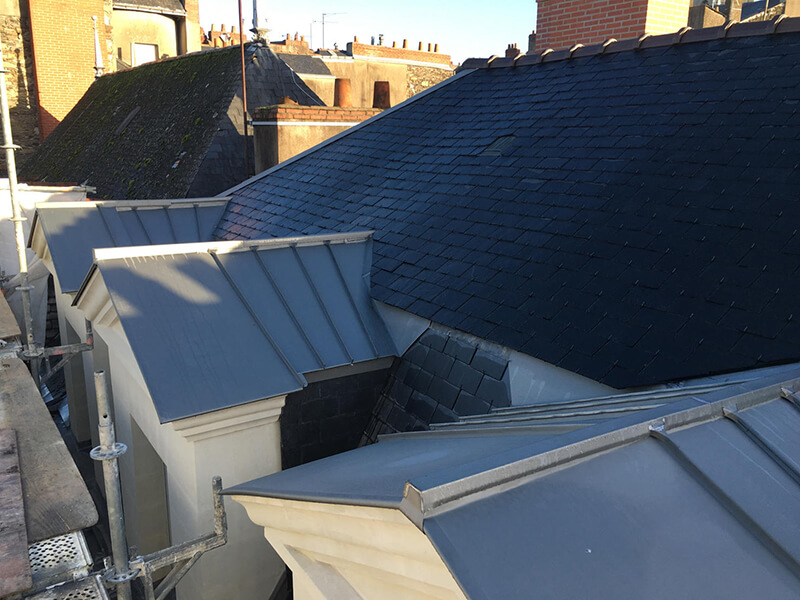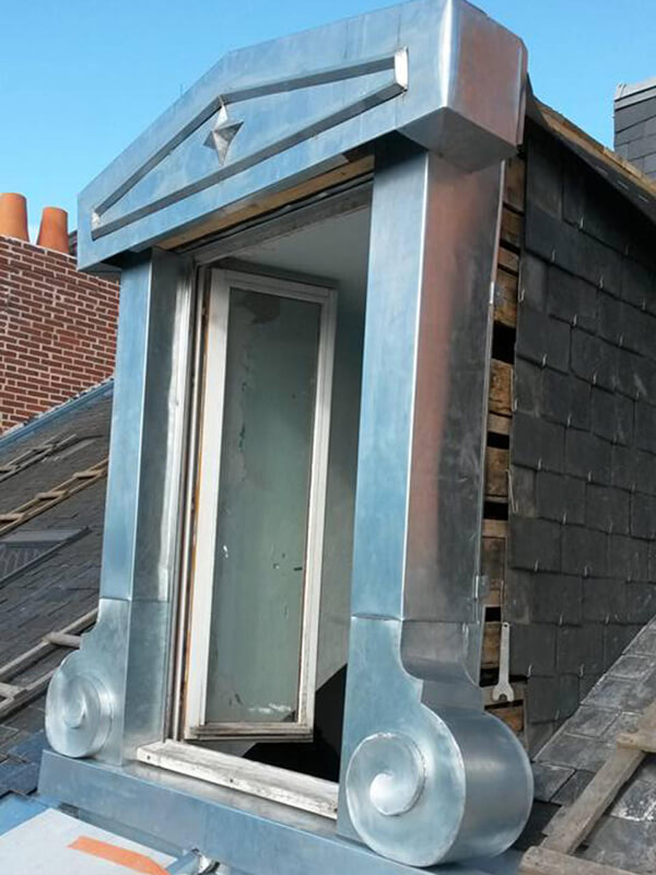 Spécialisés dans l’étanchéité des toitures et des cheminées, nous posons chéneaux et gouttières en zinc, plomb, cuivre et PVC. Nos compagnons et ouvriers spécialisés interviennent également dans la zinguerie d’art avec la réalisation sur mesure de décorations extérieures en cuivre ou en zinc.